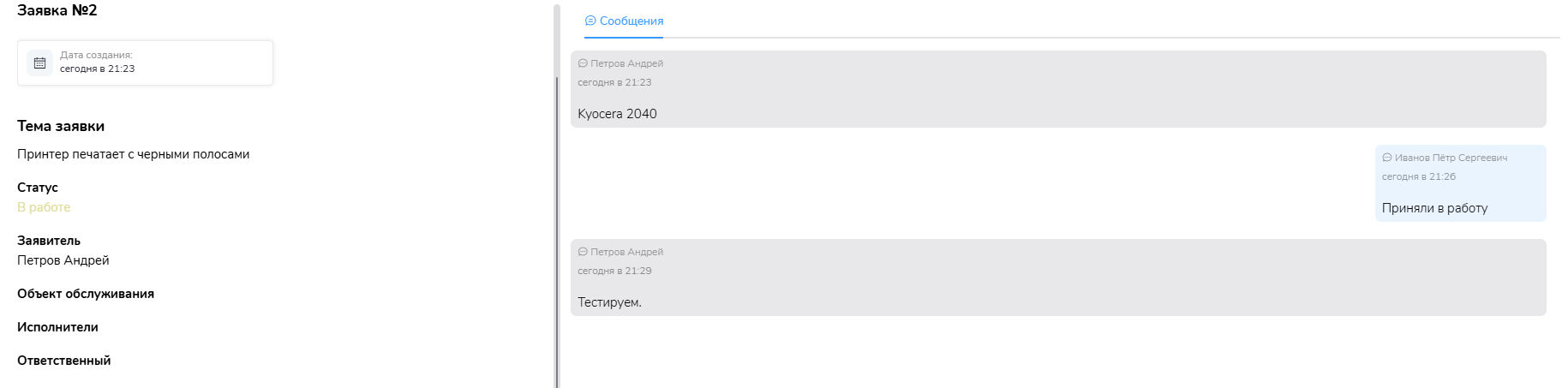 После завершения процесса регистрации откроется рабочее пространство журнала заявок