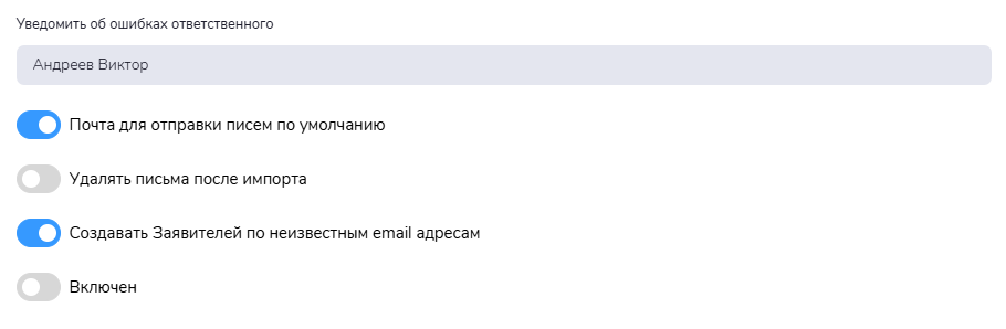 Можно использовать несколько почтовых ящиков для регистрации заявок. Например, если вы разделяете регистрацию по разным службам. В настройках сборщика укажите, является ли этот ящик по умолчанию для отправки писем - Почта для отправки писем по умочанию.