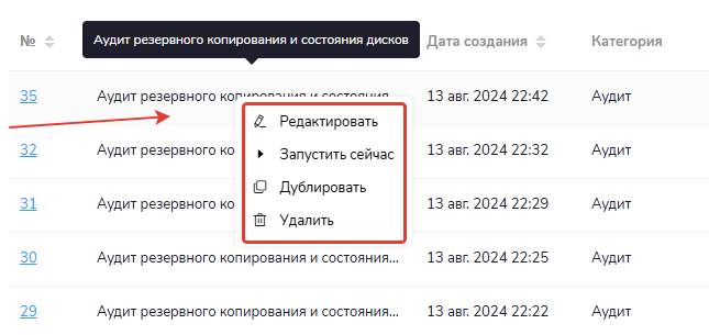 В журнале событй кликнув правой кнопкой мыши откроем контектное меню, где вы можете запустить, дублировать или удалить событие.