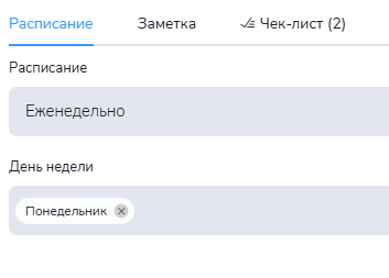 В правой части окна находятся блоки Расписание, Заметка, Чек-лист
