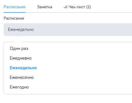Выбрите подходящее для вас расписания создания заявки. Однократное или повторяющееся по заданным параметрам.