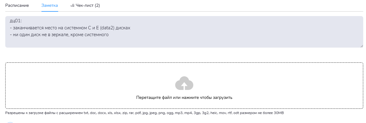 В блоке Заметки вы можете поместить информацию для исполнителя созданной событием заявке, указать некоторые особенности её выполнения. Вы можете приложить фото для наглядности. Такие заметки позволяют исполнителю учесть неочевидные нюансы выполенения заявки. Вам не придется устно объяснять задачи.