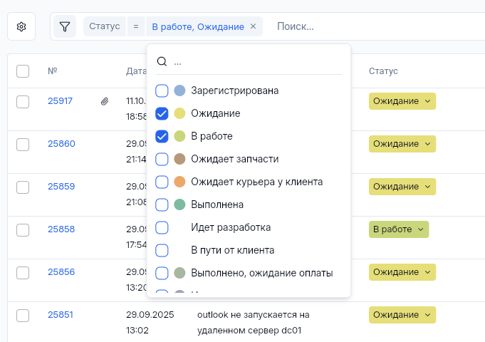 27 октября 2025 г.Включение/Отключение колонок журнала заявок