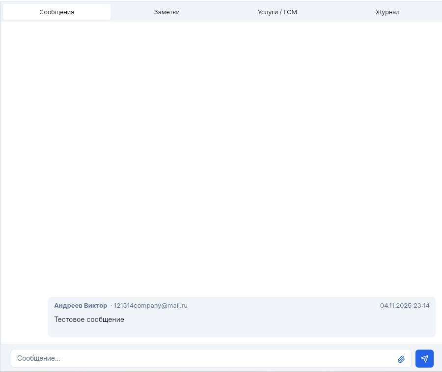 Область данных заявки, Заметки. Обмен сообщениями между Сотрудниками.