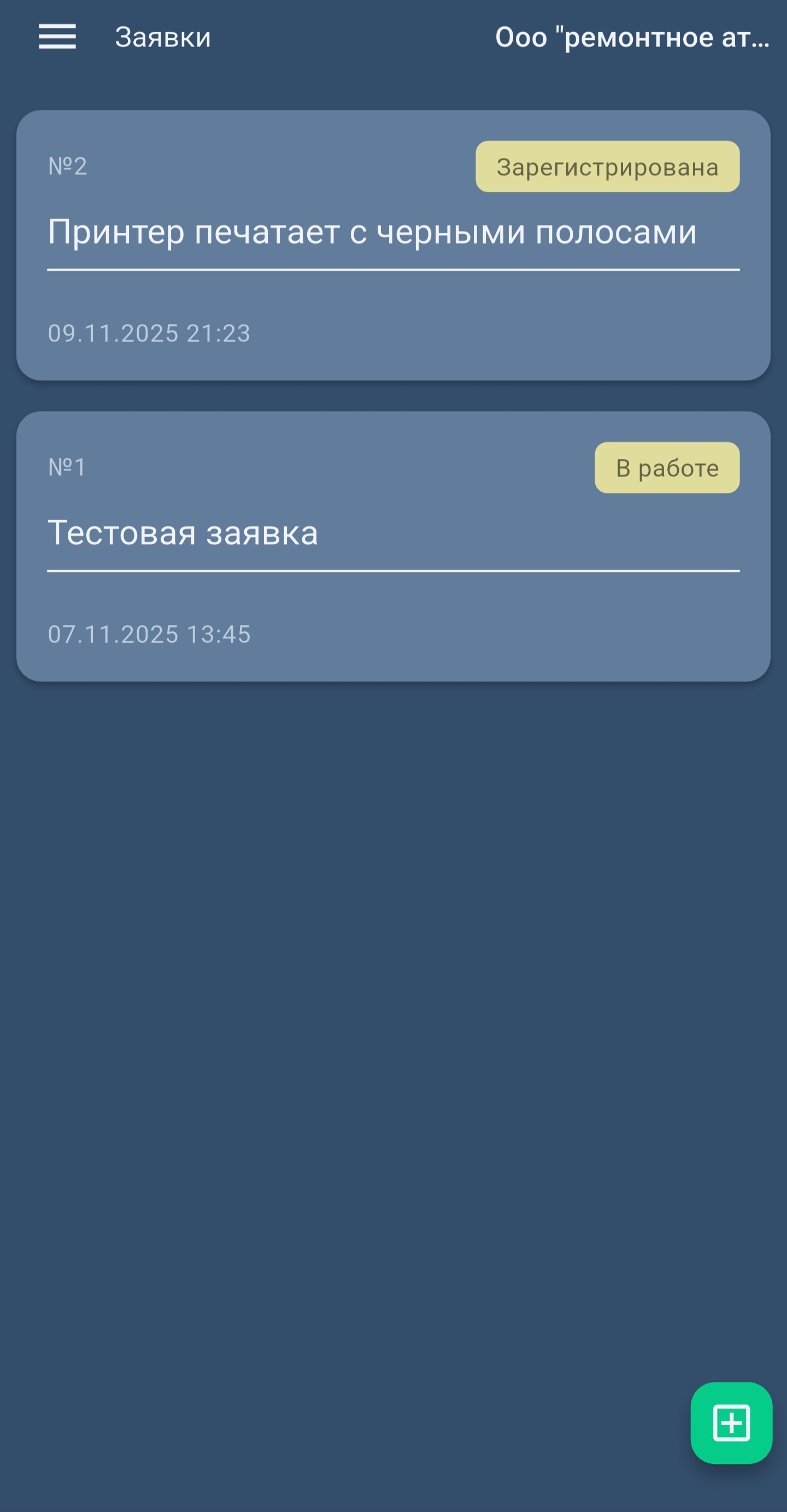 После завершения процесса регистрации откроется рабочее пространство журнала заявок