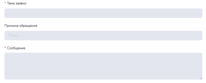 Когда Заявитель создаёт заявку через ЛК, обязательные поля для заполнения только Тема и Сообщение: