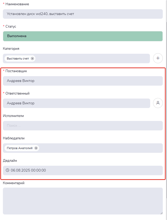 Добавлять в задачу коллег для совместной работы, устанавливать дэдлайны.