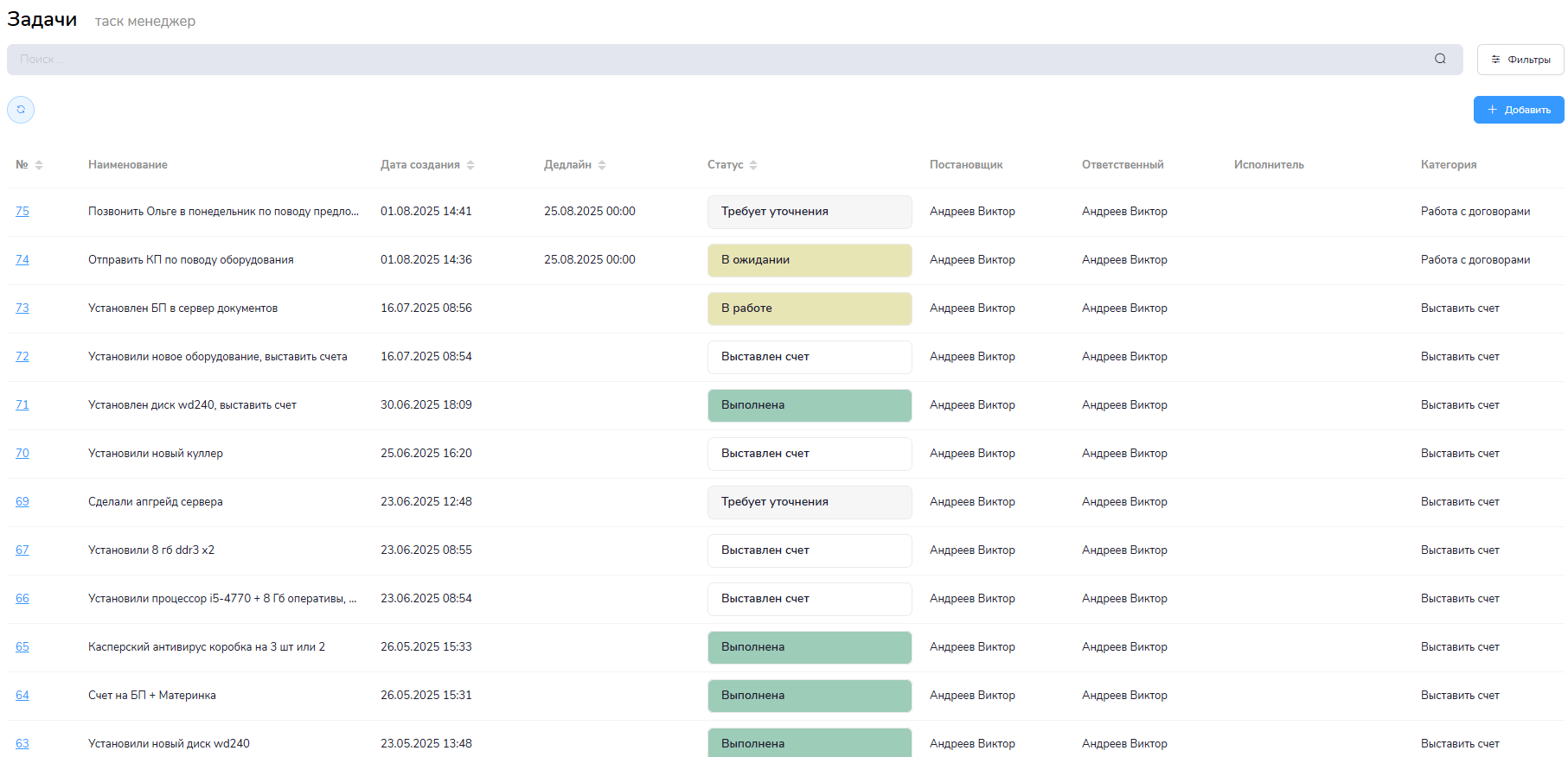 Модуль задач предназначен для организации внутренней работы компании
