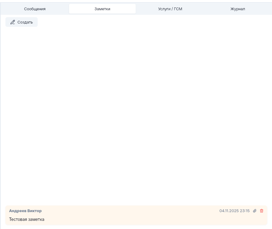 Область данных заявки, Заметки. Обмен сообщениями между Сотрудниками.